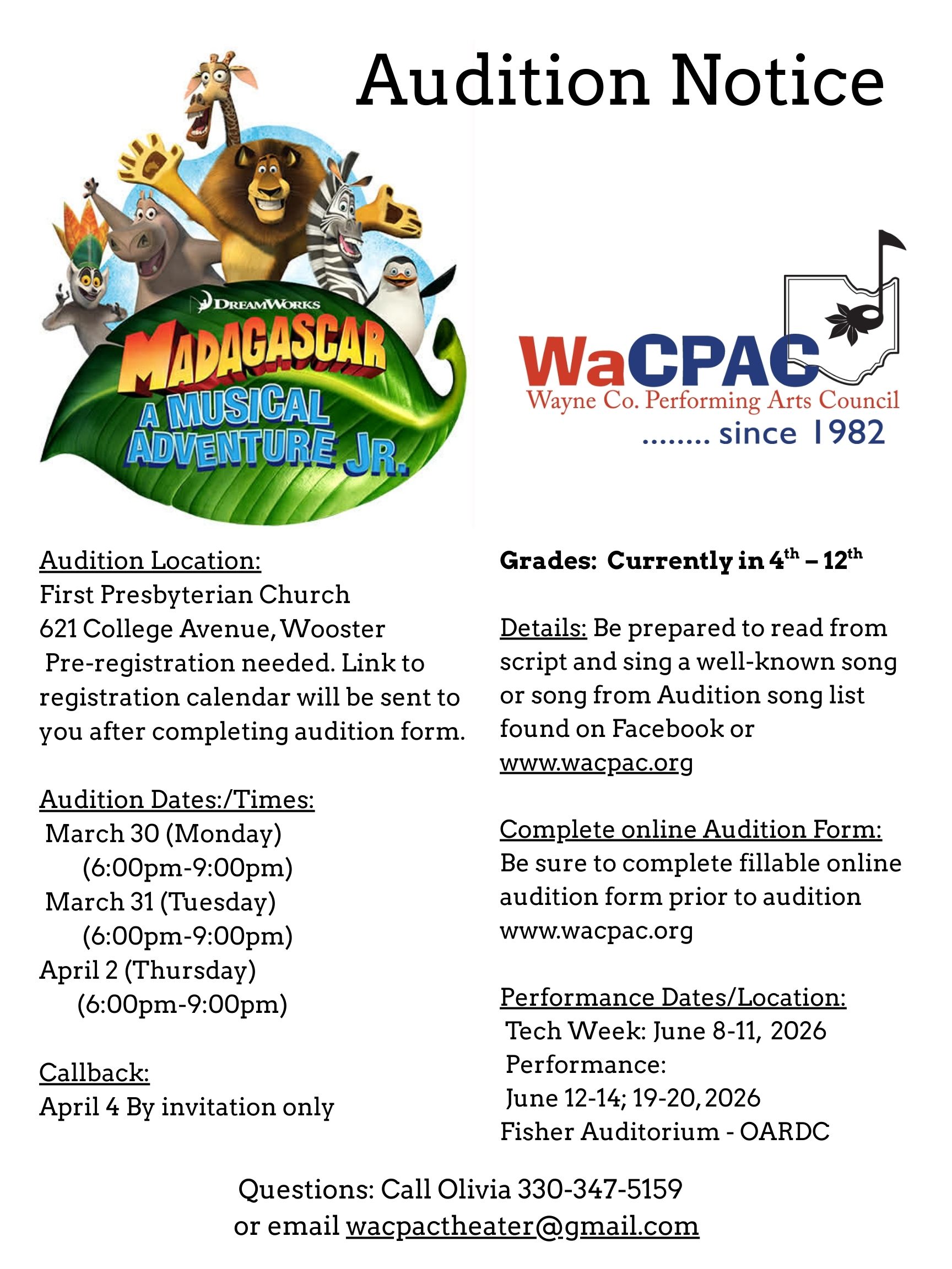 Audition Song List